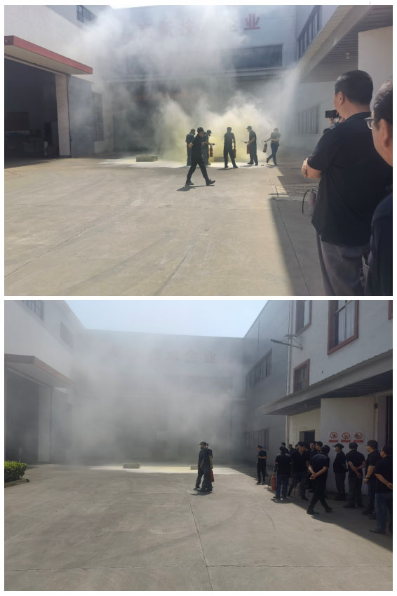 隨著一股濃煙升起、警鈴拉響,大家按照指定路線彎著腰、胳膊肘內(nèi)側(cè)捂住口鼻迅速有序地進(jìn)行疏散撤離,在一分半鐘內(nèi)到達(dá)指定的安全區(qū)域。大家輪流使用干粉、干冰滅火器進(jìn)行實際火源滅火操作,通過實踐,讓大家熟練掌握了滅火器的使用方法和要領(lǐng)。